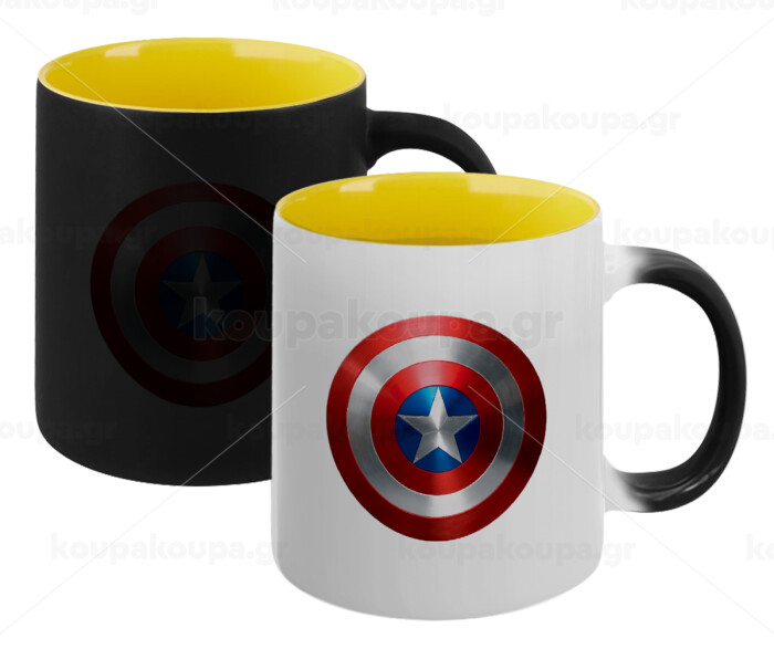 Captain America, Κούπα Μαγική εσωτερικό κίτρινη, κεραμική 330ml που αλλάζει χρώμα με το ζεστό ρόφημα