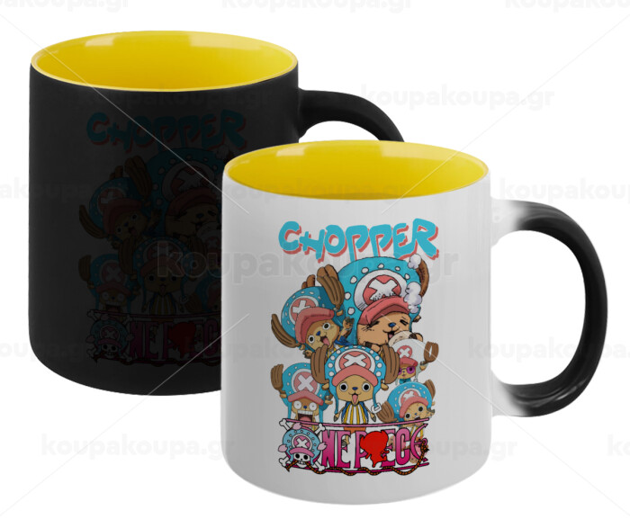 Chopper One Piece, Κούπα Μαγική εσωτερικό κίτρινη, κεραμική 330ml που αλλάζει χρώμα με το ζεστό ρόφημα