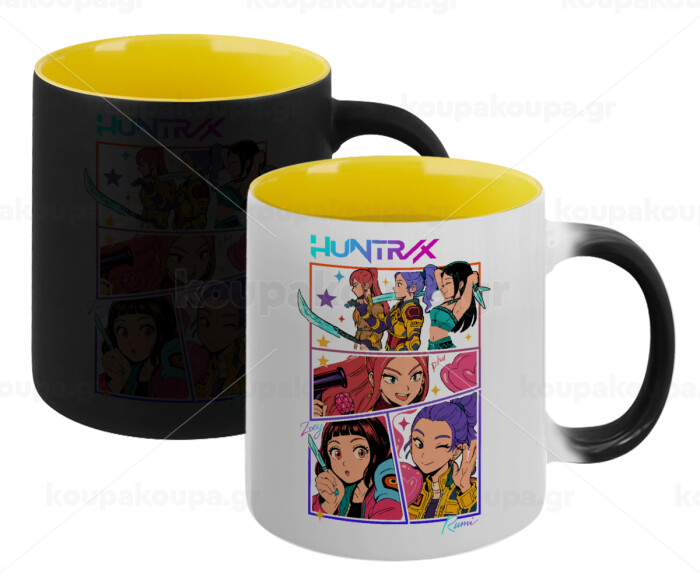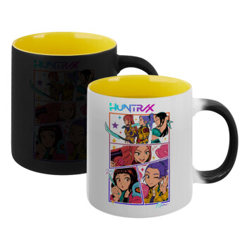 Huntrix Kpop Girls, Κούπα Μαγική εσωτερικό κίτρινη, κεραμική 330ml που αλλάζει χρώμα με το ζεστό ρόφημα