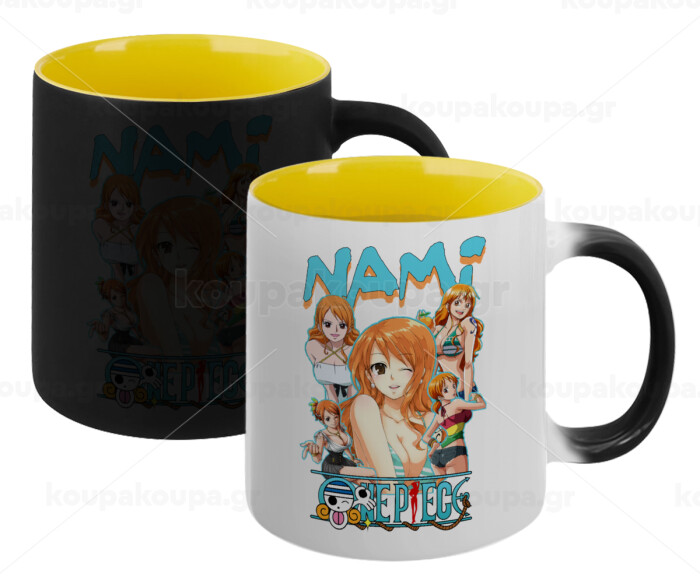Nami One Piece, Κούπα Μαγική εσωτερικό κίτρινη, κεραμική 330ml που αλλάζει χρώμα με το ζεστό ρόφημα