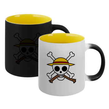 Onepiece skull, Κούπα Μαγική εσωτερικό κίτρινη, κεραμική 330ml που αλλάζει χρώμα με το ζεστό ρόφημα