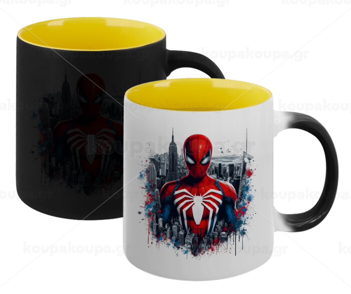Spiderman City, Κούπα Μαγική εσωτερικό κίτρινη, κεραμική 330ml που αλλάζει χρώμα με το ζεστό ρόφημα