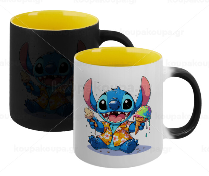 Stitch Ice cream, Κούπα Μαγική εσωτερικό κίτρινη, κεραμική 330ml που αλλάζει χρώμα με το ζεστό ρόφημα