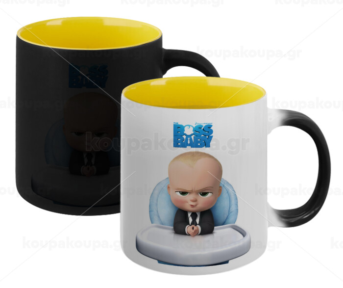 The boss baby, Κούπα Μαγική εσωτερικό κίτρινη, κεραμική 330ml που αλλάζει χρώμα με το ζεστό ρόφημα