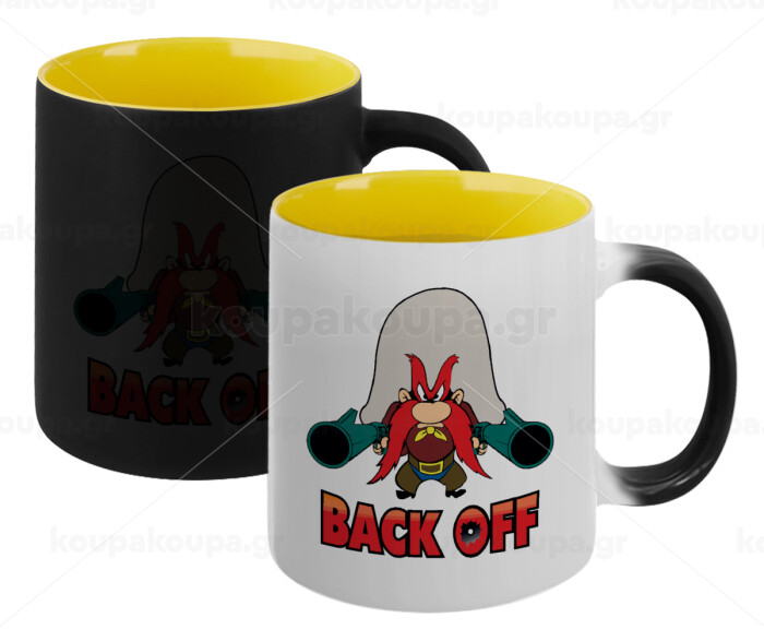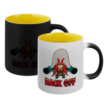 Yosemite Sam Back OFF, Κούπα Μαγική εσωτερικό κίτρινη, κεραμική 330ml που αλλάζει χρώμα με το ζεστό ρόφημα