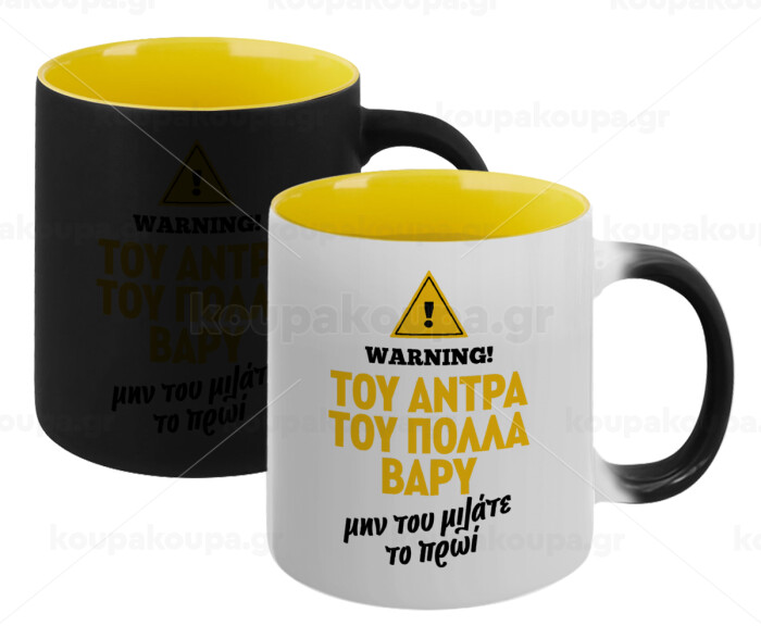 Του άντρα του πολλά βαρύ, Κούπα Μαγική εσωτερικό κίτρινη, κεραμική 330ml που αλλάζει χρώμα με το ζεστό ρόφημα