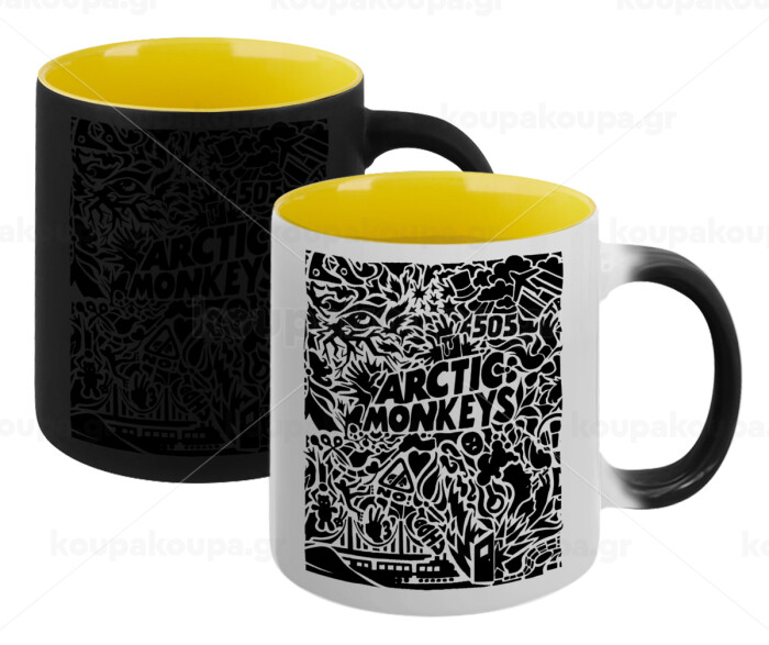 Arctic Monkeys, Κούπα Μαγική εσωτερικό κίτρινη, κεραμική 330ml που αλλάζει χρώμα με το ζεστό ρόφημα