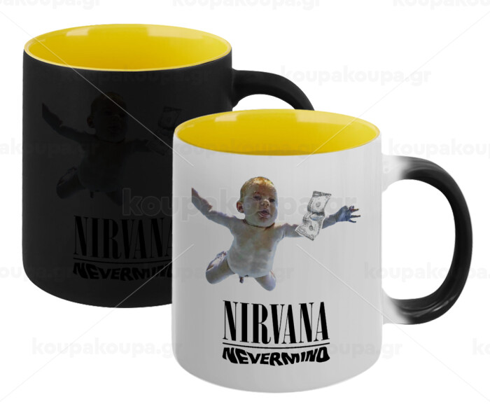 Nirvana nevermind, Κούπα Μαγική εσωτερικό κίτρινη, κεραμική 330ml που αλλάζει χρώμα με το ζεστό ρόφημα