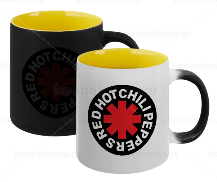 Red Hot Chili Peppers, Κούπα Μαγική εσωτερικό κίτρινη, κεραμική 330ml που αλλάζει χρώμα με το ζεστό ρόφημα
