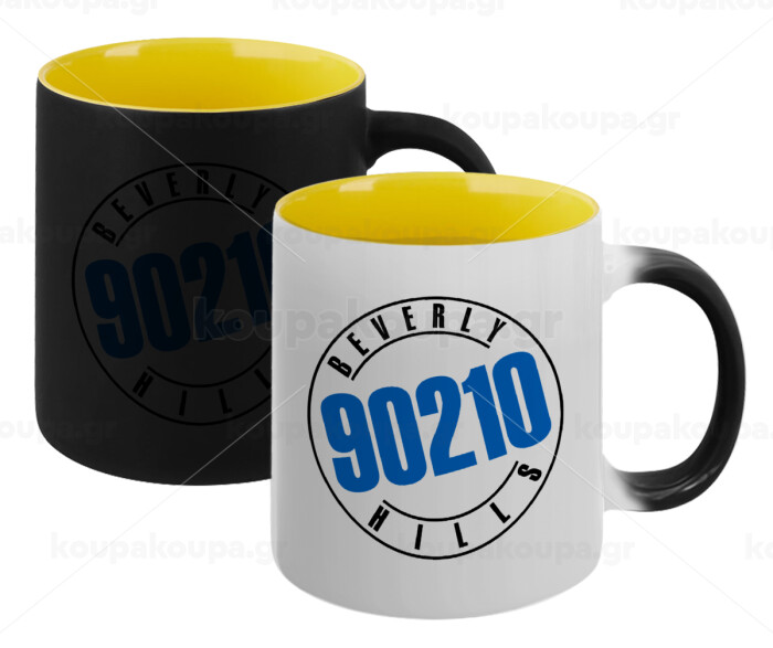 Beverly Hills, 90210, Κούπα Μαγική εσωτερικό κίτρινη, κεραμική 330ml που αλλάζει χρώμα με το ζεστό ρόφημα