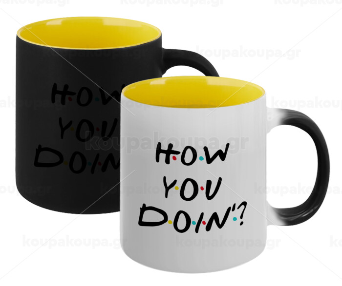 Friends How You Doin'?, Κούπα Μαγική εσωτερικό κίτρινη, κεραμική 330ml που αλλάζει χρώμα με το ζεστό ρόφημα