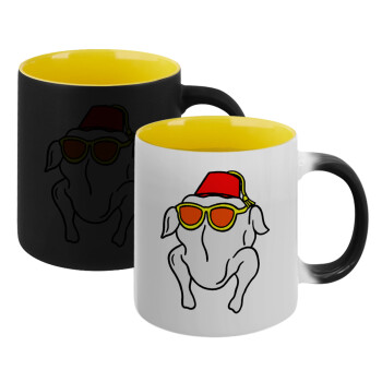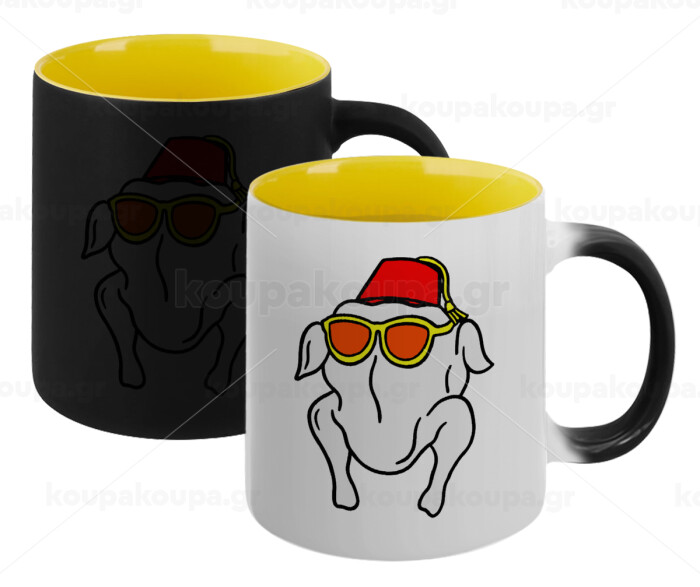 Friends turkey, Κούπα Μαγική εσωτερικό κίτρινη, κεραμική 330ml που αλλάζει χρώμα με το ζεστό ρόφημα