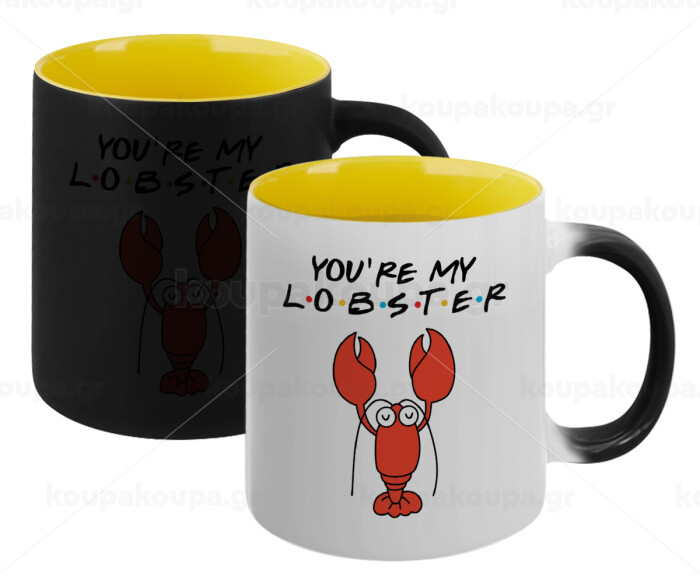 Friends you're my lobster, Κούπα Μαγική εσωτερικό κίτρινη, κεραμική 330ml που αλλάζει χρώμα με το ζεστό ρόφημα