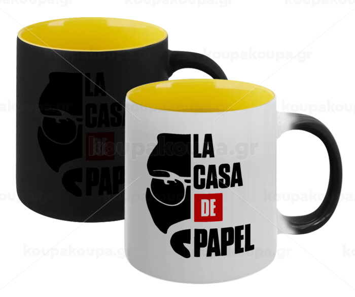La casa de papel, Κούπα Μαγική εσωτερικό κίτρινη, κεραμική 330ml που αλλάζει χρώμα με το ζεστό ρόφημα