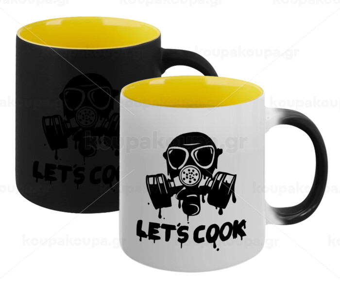 Let's cook mask, Κούπα Μαγική εσωτερικό κίτρινη, κεραμική 330ml που αλλάζει χρώμα με το ζεστό ρόφημα