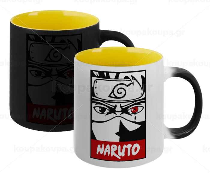 Naruto anime, Κούπα Μαγική εσωτερικό κίτρινη, κεραμική 330ml που αλλάζει χρώμα με το ζεστό ρόφημα