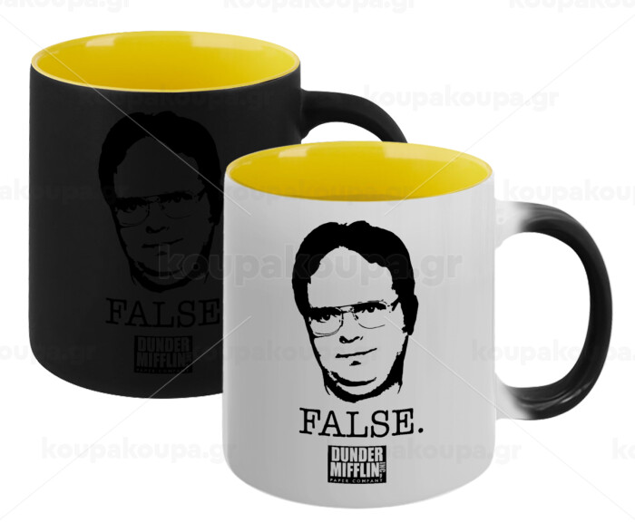 The office Dwight, Κούπα Μαγική εσωτερικό κίτρινη, κεραμική 330ml που αλλάζει χρώμα με το ζεστό ρόφημα