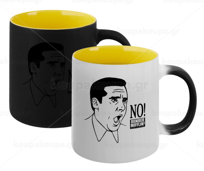 The office Michael NO!!!, Κούπα Μαγική εσωτερικό κίτρινη, κεραμική 330ml που αλλάζει χρώμα με το ζεστό ρόφημα