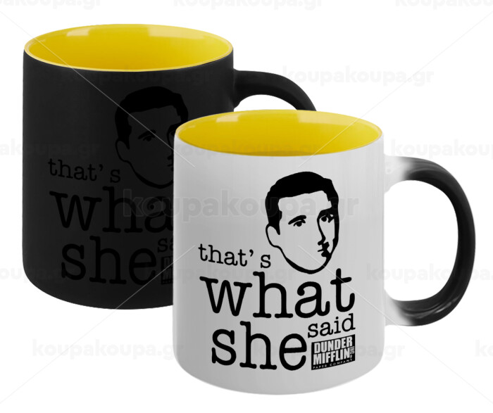 The office Michael That's what she said, Κούπα Μαγική εσωτερικό κίτρινη, κεραμική 330ml που αλλάζει χρώμα με το ζεστό ρόφημα