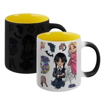 Wednesday and Enid Sinclair, Κούπα Μαγική εσωτερικό κίτρινη, κεραμική 330ml που αλλάζει χρώμα με το ζεστό ρόφημα
