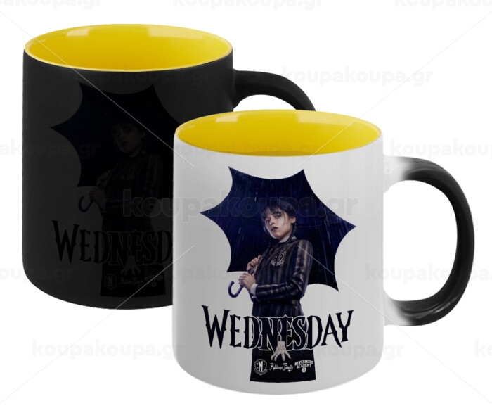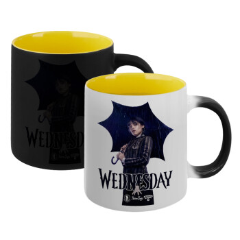 Wednesday rain, Κούπα Μαγική εσωτερικό κίτρινη, κεραμική 330ml που αλλάζει χρώμα με το ζεστό ρόφημα