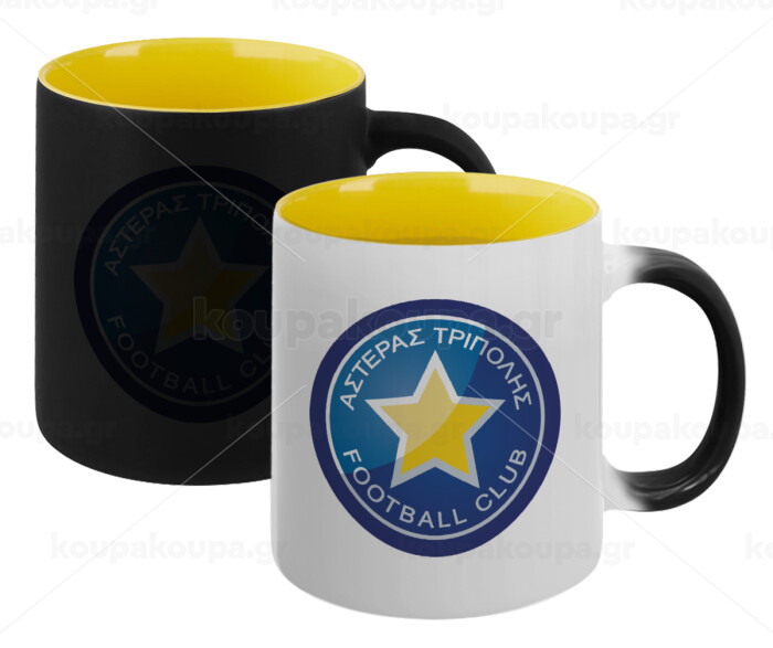 Asteras Tripolis, Κούπα Μαγική εσωτερικό κίτρινη, κεραμική 330ml που αλλάζει χρώμα με το ζεστό ρόφημα