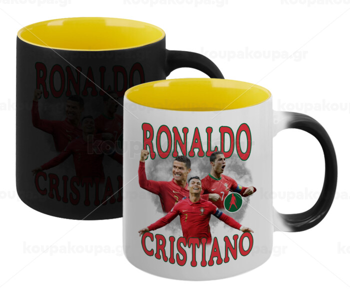 Cristiano Ronaldo, Κούπα Μαγική εσωτερικό κίτρινη, κεραμική 330ml που αλλάζει χρώμα με το ζεστό ρόφημα