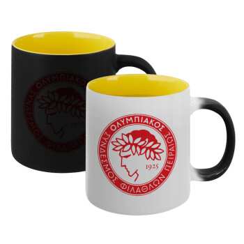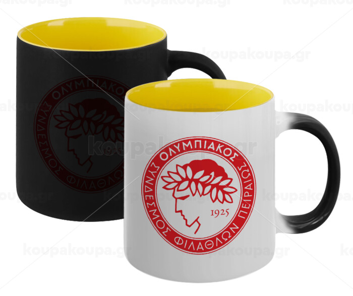 Ολυμπιακός, Κούπα Μαγική εσωτερικό κίτρινη, κεραμική 330ml που αλλάζει χρώμα με το ζεστό ρόφημα