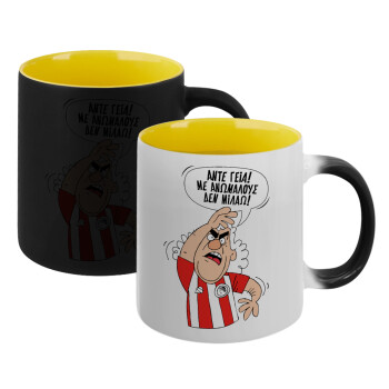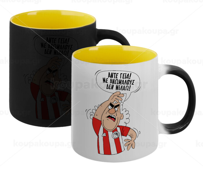 Τάκης, Άντε γεια, με ανώμαλους δεν μιλάω!, Κούπα Μαγική εσωτερικό κίτρινη, κεραμική 330ml που αλλάζει χρώμα με το ζεστό ρόφημα