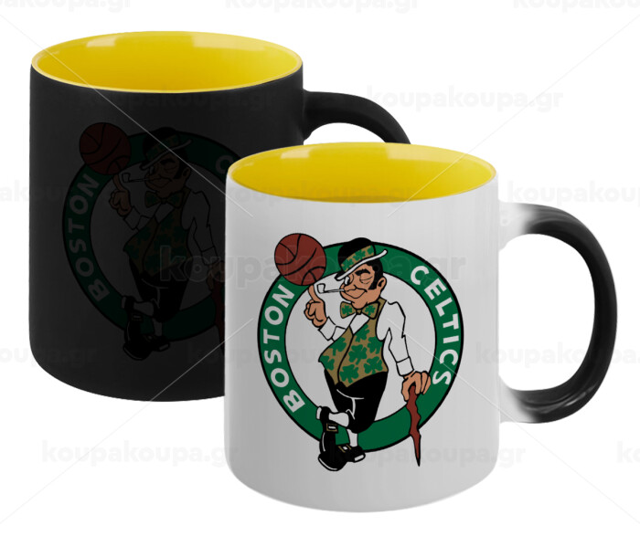 Boston Celtics, Κούπα Μαγική εσωτερικό κίτρινη, κεραμική 330ml που αλλάζει χρώμα με το ζεστό ρόφημα