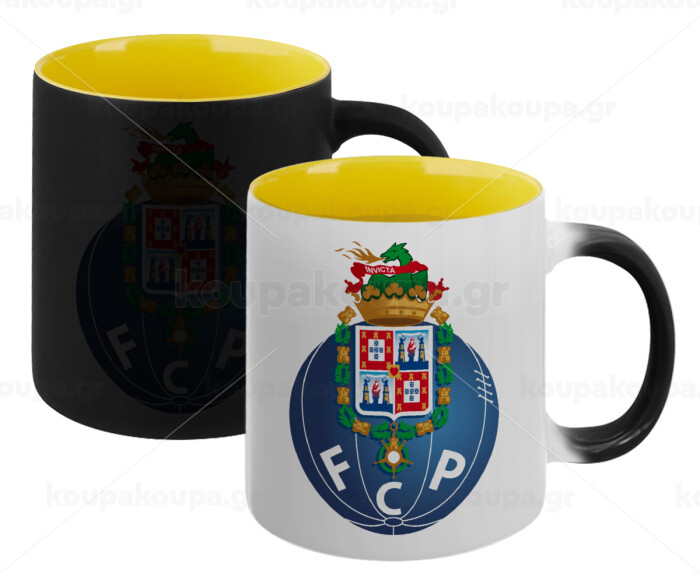 FCP, Κούπα Μαγική εσωτερικό κίτρινη, κεραμική 330ml που αλλάζει χρώμα με το ζεστό ρόφημα