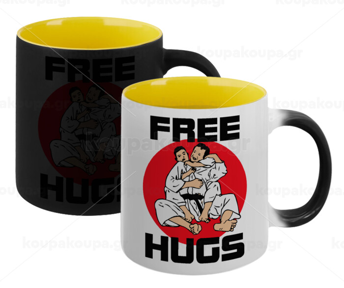 JUDO free hugs, Κούπα Μαγική εσωτερικό κίτρινη, κεραμική 330ml που αλλάζει χρώμα με το ζεστό ρόφημα