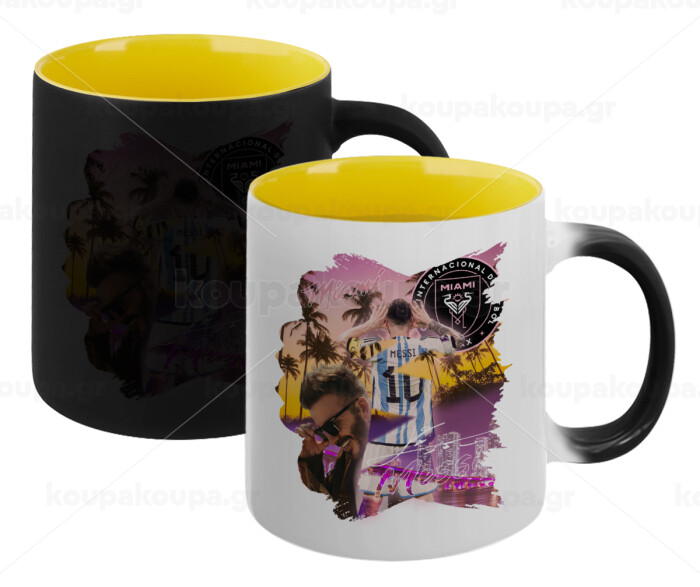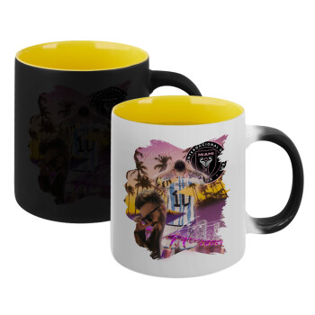 Lionel Messi Miami, Κούπα Μαγική εσωτερικό κίτρινη, κεραμική 330ml που αλλάζει χρώμα με το ζεστό ρόφημα