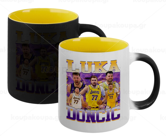 Luka Doncic Basketball , Κούπα Μαγική εσωτερικό κίτρινη, κεραμική 330ml που αλλάζει χρώμα με το ζεστό ρόφημα