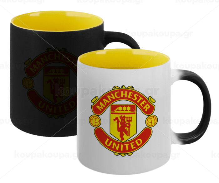 Manchester United F.C., Κούπα Μαγική εσωτερικό κίτρινη, κεραμική 330ml που αλλάζει χρώμα με το ζεστό ρόφημα