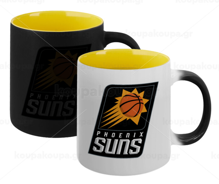 Phoenix Suns, Κούπα Μαγική εσωτερικό κίτρινη, κεραμική 330ml που αλλάζει χρώμα με το ζεστό ρόφημα