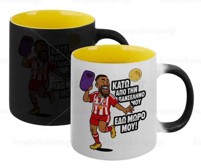 Ροντινέι, "ΚΑΤΩ ΑΠΟ ΤΗΝ ΠΑΝΣΕΛΗΝΟ ΜΟΥ!", Κούπα Μαγική εσωτερικό κίτρινη, κεραμική 330ml που αλλάζει χρώμα με το ζεστό ρόφημα