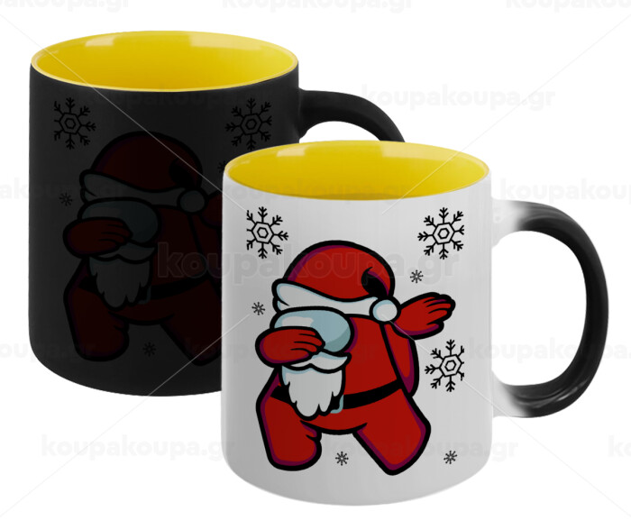 Among US Xmas, Κούπα Μαγική εσωτερικό κίτρινη, κεραμική 330ml που αλλάζει χρώμα με το ζεστό ρόφημα