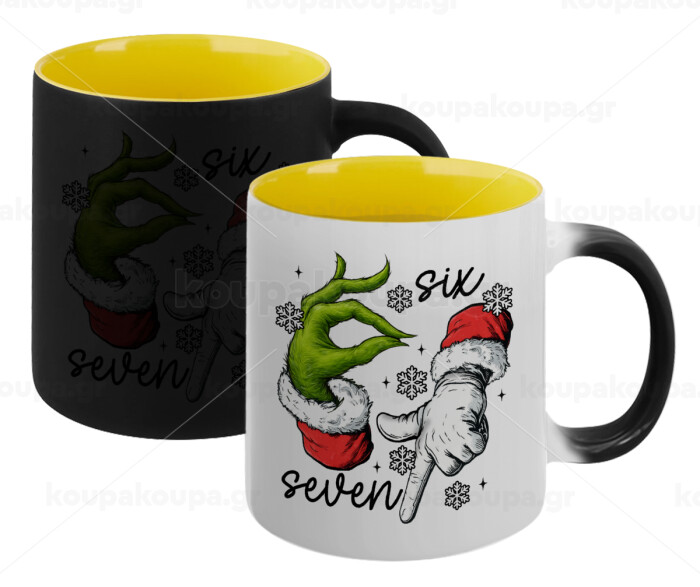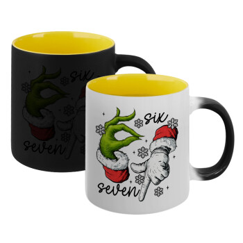 Christmas Meme SIX SEVEN (67), Κούπα Μαγική εσωτερικό κίτρινη, κεραμική 330ml που αλλάζει χρώμα με το ζεστό ρόφημα