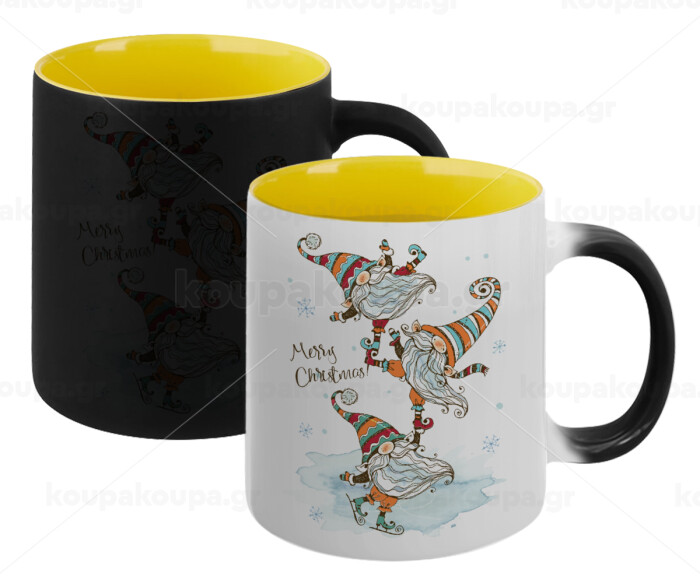 Christmas nordic gnomes, Κούπα Μαγική εσωτερικό κίτρινη, κεραμική 330ml που αλλάζει χρώμα με το ζεστό ρόφημα
