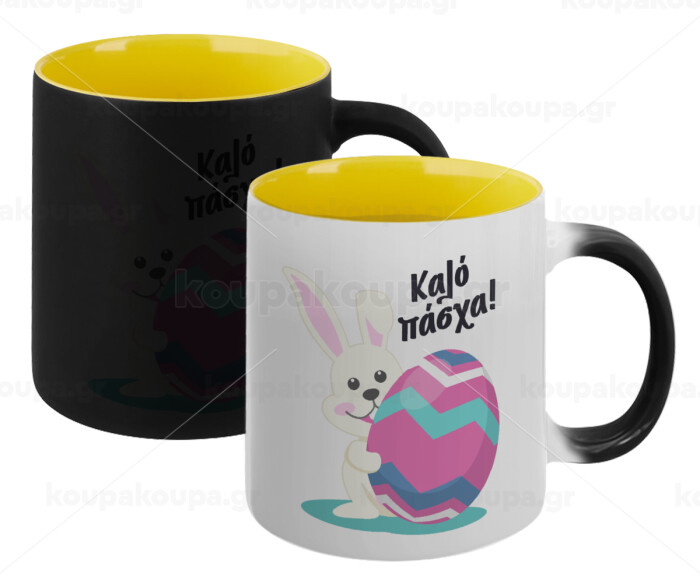 Καλό πάσχα, Κούπα Μαγική εσωτερικό κίτρινη, κεραμική 330ml που αλλάζει χρώμα με το ζεστό ρόφημα