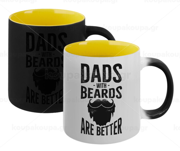 Dad's with beards are better, Κούπα Μαγική εσωτερικό κίτρινη, κεραμική 330ml που αλλάζει χρώμα με το ζεστό ρόφημα