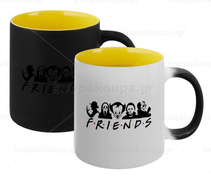 Halloween Friends, Κούπα Μαγική εσωτερικό κίτρινη, κεραμική 330ml που αλλάζει χρώμα με το ζεστό ρόφημα