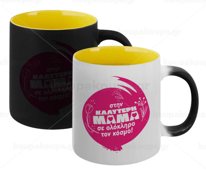 Στην καλύτερη μαμά του κόσμου!, Κούπα Μαγική εσωτερικό κίτρινη, κεραμική 330ml που αλλάζει χρώμα με το ζεστό ρόφημα