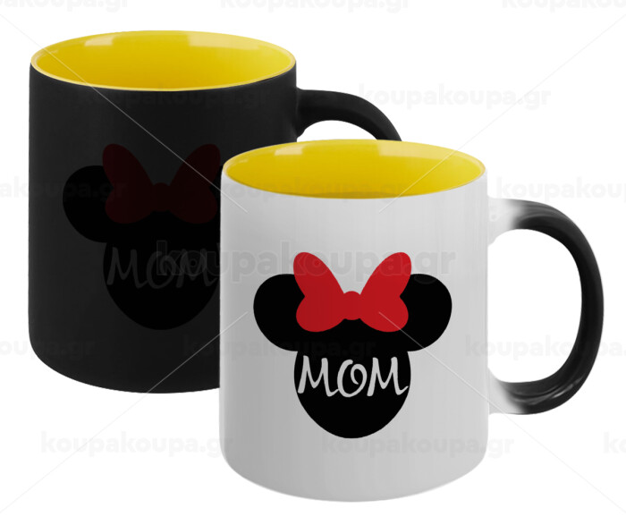 mini mom, Κούπα Μαγική εσωτερικό κίτρινη, κεραμική 330ml που αλλάζει χρώμα με το ζεστό ρόφημα
