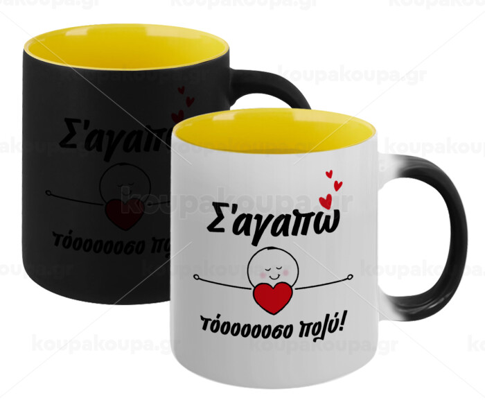 Σ΄αγαπώ τόοοοσο πολύ (Κορίτσι)!!!, Κούπα Μαγική εσωτερικό κίτρινη, κεραμική 330ml που αλλάζει χρώμα με το ζεστό ρόφημα