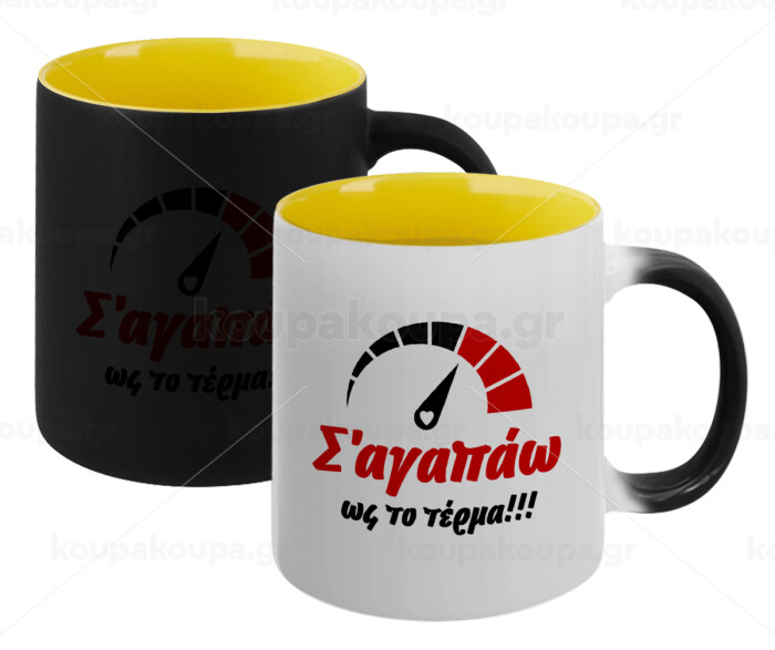 Σ΄ αγαπώ ως το τέρμα!!!, Κούπα Μαγική εσωτερικό κίτρινη, κεραμική 330ml που αλλάζει χρώμα με το ζεστό ρόφημα