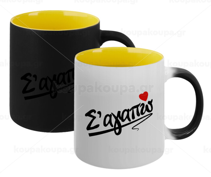 Σ΄ αγαπώ!!!, Κούπα Μαγική εσωτερικό κίτρινη, κεραμική 330ml που αλλάζει χρώμα με το ζεστό ρόφημα