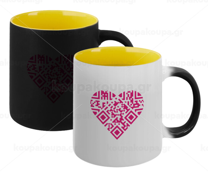 Heart hidden MSG, try me!!!, Κούπα Μαγική εσωτερικό κίτρινη, κεραμική 330ml που αλλάζει χρώμα με το ζεστό ρόφημα