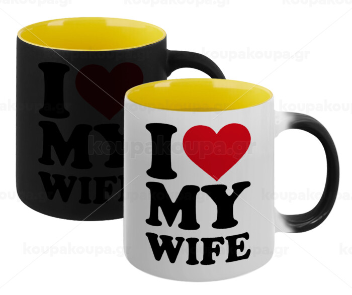 I Love my Wife, Κούπα Μαγική εσωτερικό κίτρινη, κεραμική 330ml που αλλάζει χρώμα με το ζεστό ρόφημα